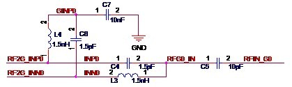其實大家也一定想到了,收發(fā)器接收信號和收發(fā)器發(fā)送信號差不多就是互為逆過程,因此電路的結(jié)構(gòu)也差不多是相反的。沒錯,看了下面的實際電路圖就知道了。 先來介紹使用平衡器的方案。在某實際案例中,采用了如圖2-8所示的平衡器電路。單端信號RF_IN經(jīng)過平衡器F5后得到差分的射頻信號RFIN_P和RFIN_N。