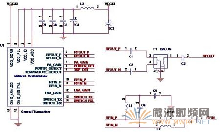 圖2-2 收發(fā)器的射頻輸入與輸出管腳
