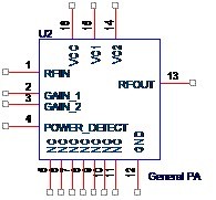 值得注意的是,GAIN_1和GAIN_2是來自收發(fā)器(Transceiver)的控制信號,是直流電壓,POWER_DETECT是功放芯片輸出的發(fā)射功率檢測值,也是直流電壓,而RFIN和RFOUT是最重要的射頻信號管腳。
