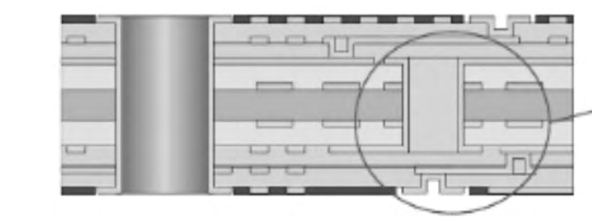 其他工藝與傳統的PCB加工流程類似,不同之處是鉆孔的時候首先3-4層機械鉆埋孔,接下來層銅、電鍍、內層圖形……一次壓合等流程后再是鉆2-5的埋孔;然后2-3和5-4的盲孔;再次沉銅、電鍍、內層圖形……二次壓合等流程后,再鉆1-6的通孔,然后是1-2,6-5的盲孔。